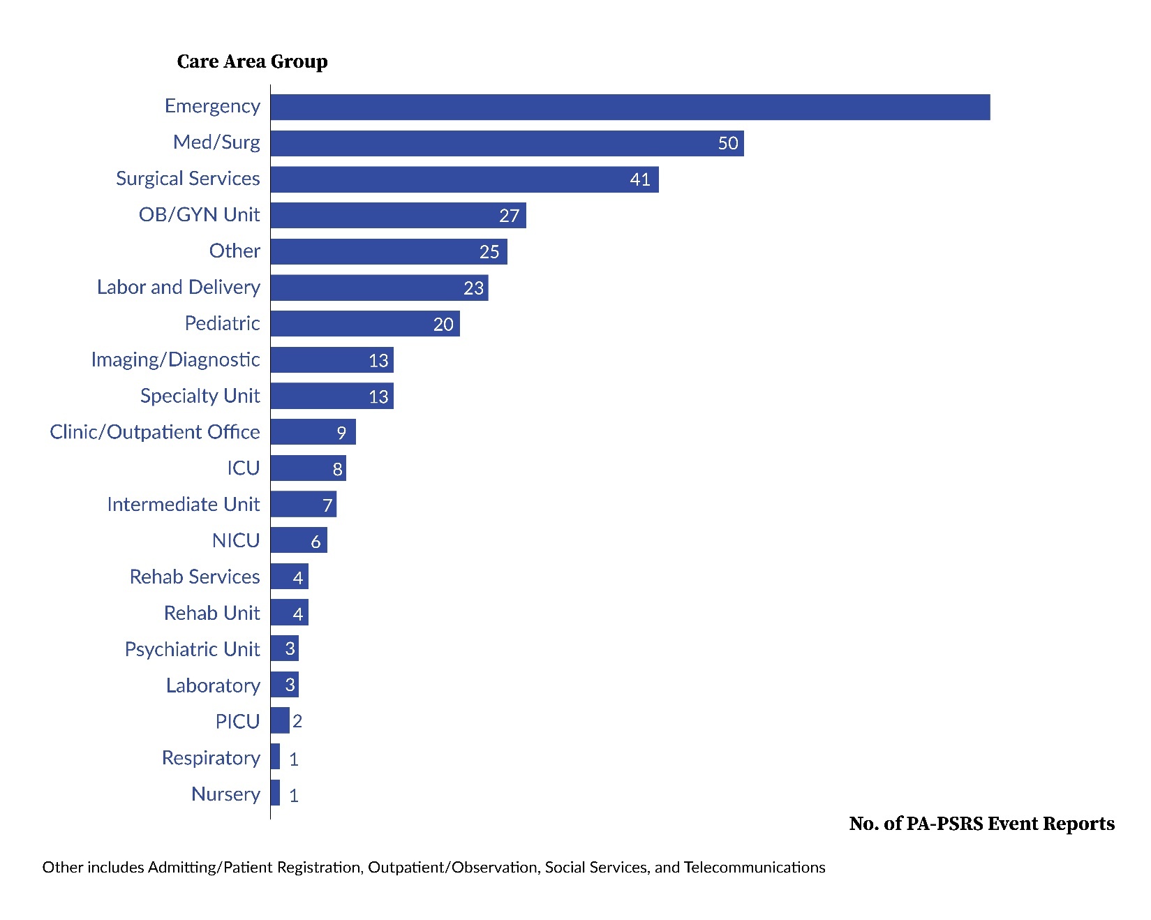 6. Within PA-PSRS, the event reporter chooses among 168 care areas to indicate the location where an event occurred. To simplify our analysis, we sorted each of the care areas into 23 higher-level care area groups.